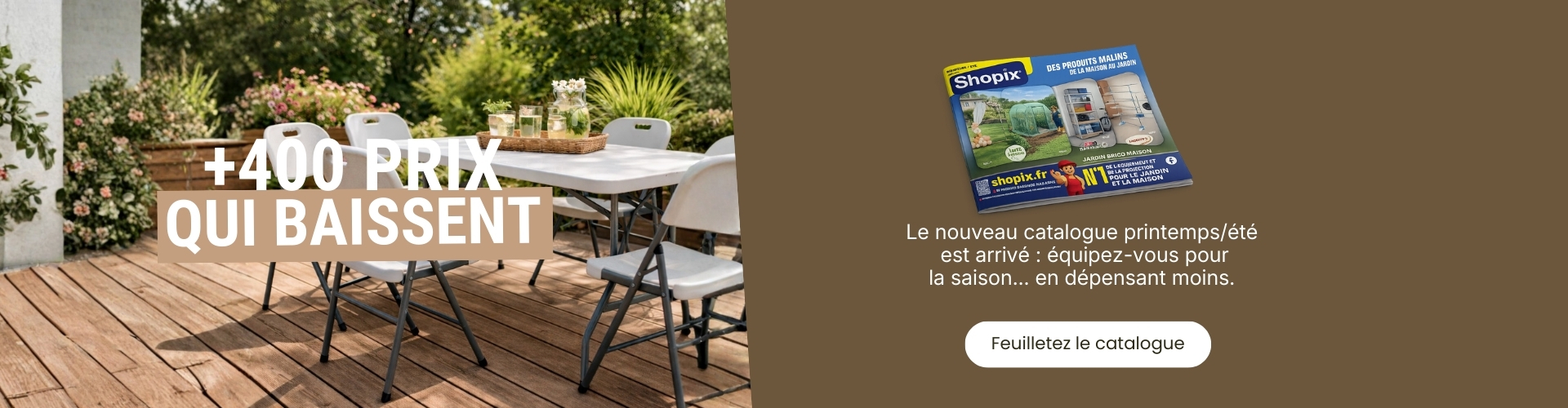 Sur shopix.fr, retrouvez une sélection pour la maison et le jardin : équipement extérieur, entretien du jardin, outillage et bricolage, rangement, cuisine, déco et essentiels du quotidien. Notre objectif : vous aider à équiper vos intérieurs comme vos extérieurs avec des produits simples à choisir, efficaces et faits pour durer.