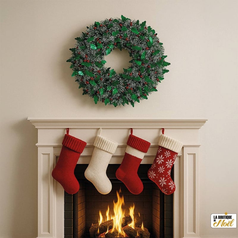- Couleurs traditionnelles : Vert sapin, rouge vif et blanc neige pour une décoration de Noël intemporelle.