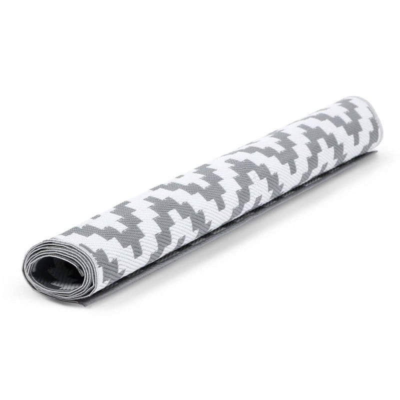 - Ce tapis d'extérieur rectangulaire à motif est très décoratif en plus d'être utile. Son joli coloris gris et blanc se marie à merveille avec n'importe quel style de mobilier de jardin.