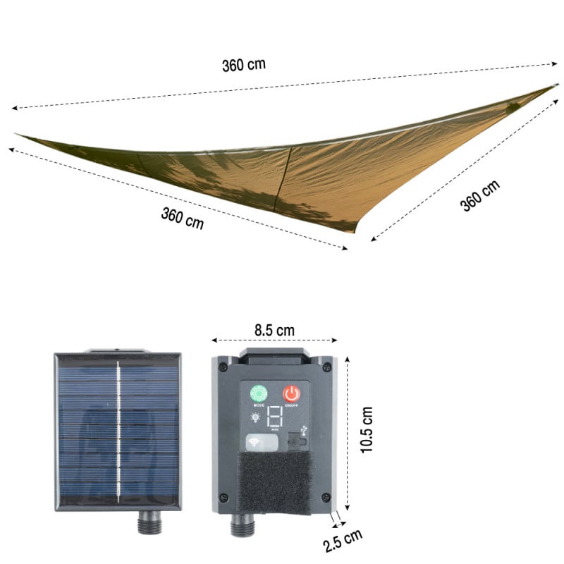 Voile d'ombrage lumineux solaire triangulaire - LED et intensité réglable
