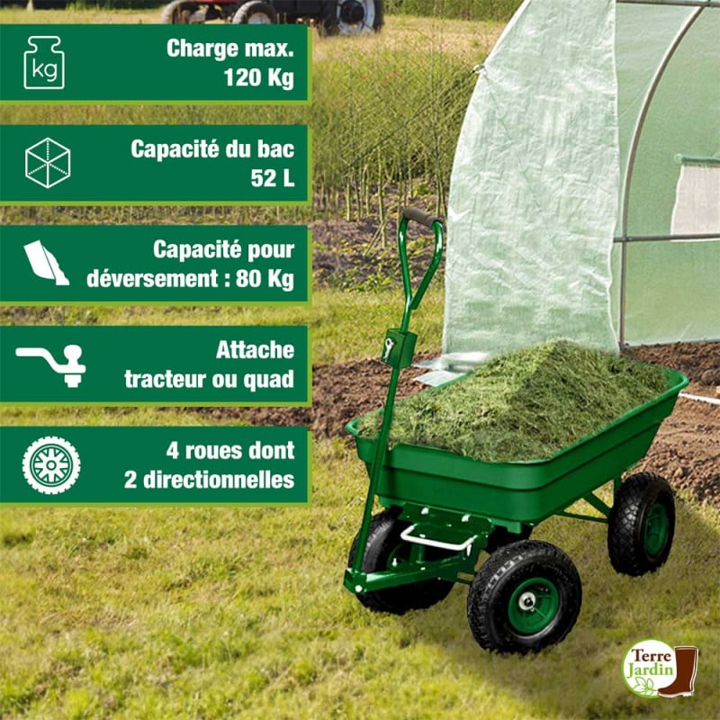 Chariot remorque de jardin - 52 litres capacité 120 kg