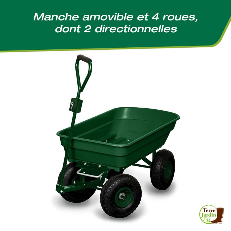 Oubliez les brouettes difficiles à pousser et à déverser : ce chariot jardin est la solution idéale pour tout transporter sans effort ! Il est très maniable grâce à ces 2 roues directionnelles pouvant supporter jusqu'à 120 kg de charge.