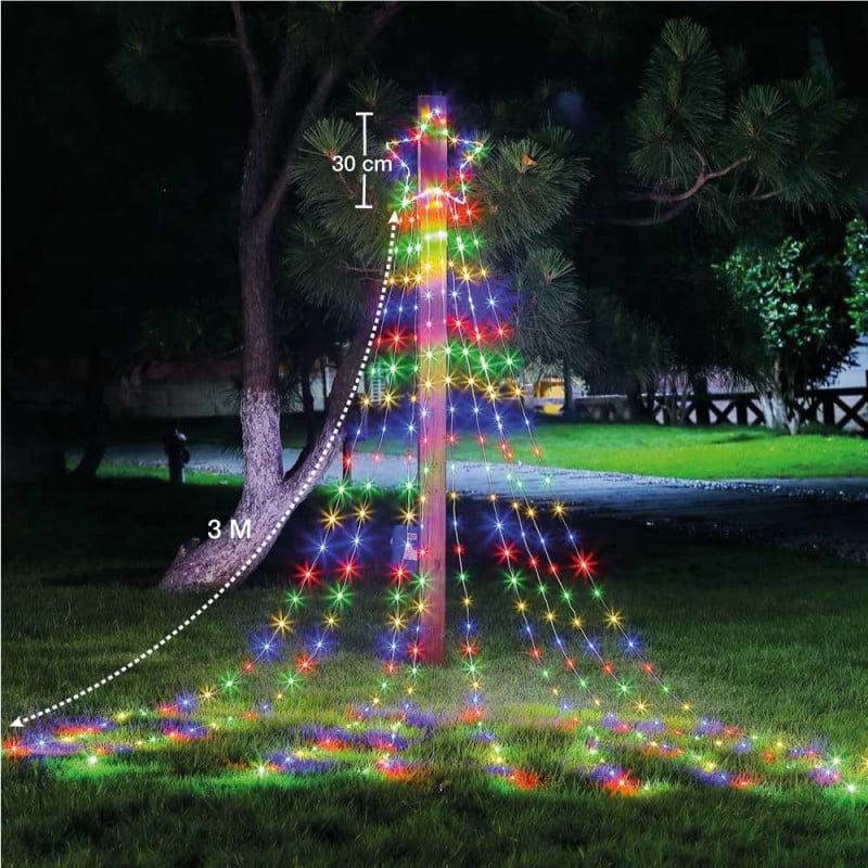 - Éclairage festif : 300 LED multicolores pour illuminer vos façades, arbres ou salons d’une ambiance chaleureuse et joyeuse.
